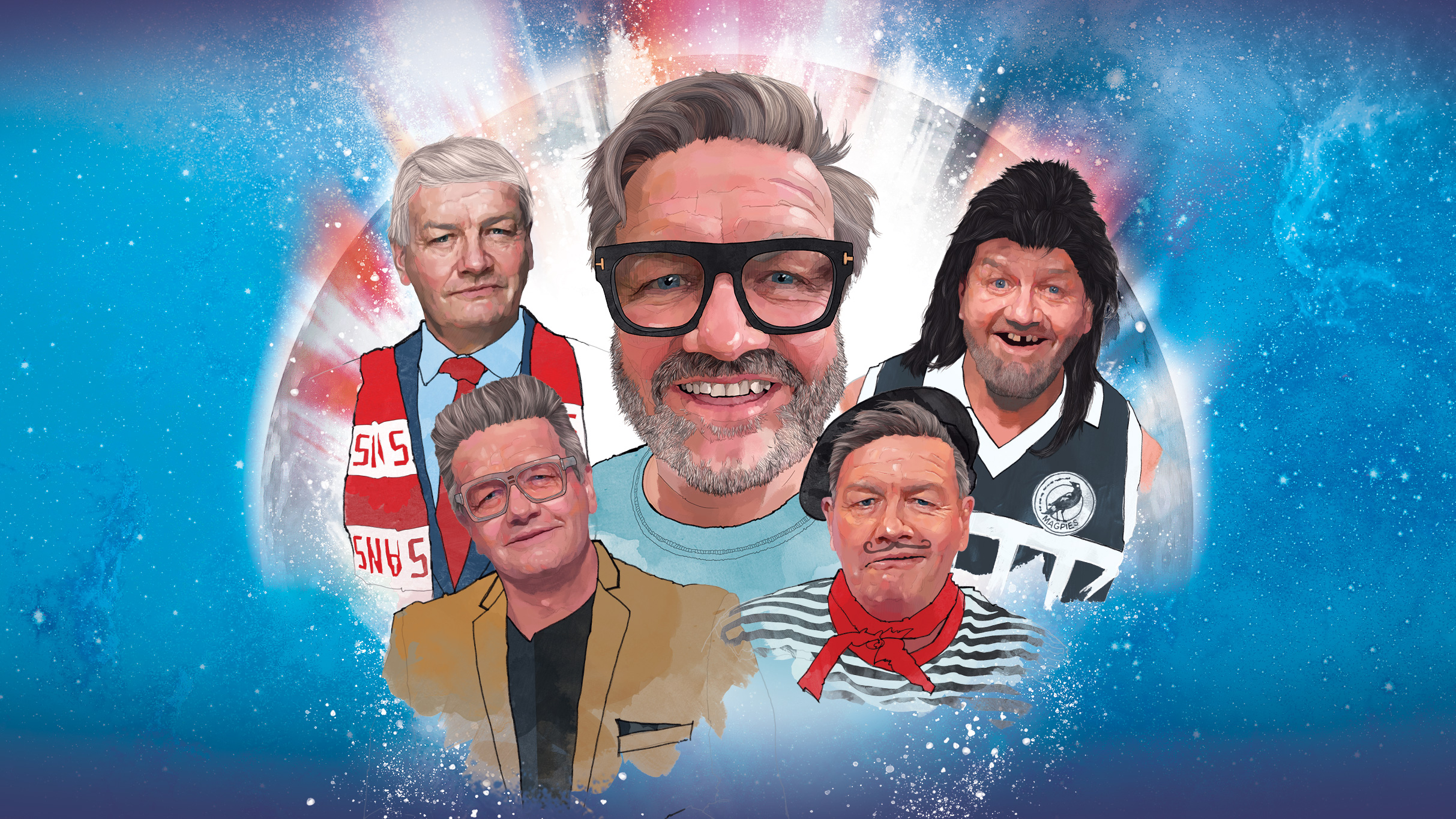 Moonman’s back-and he’s bringing the whole gang! From The Front Bar to the Melbourne International Comedy Festival, get ready for a comedy supernova featuring Dr Tyler Wall (AFL Mind Set Coach), French insights from Jean Le Camembert and Port Adelaide’s most tragic and beautiful fan, Gavin Muntberry.